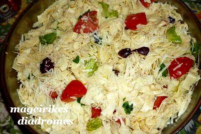 - Ανακατεύουμε καλά και γαρνίρουμε με τις ελιές και την τριμμένη παρμεζάνα.