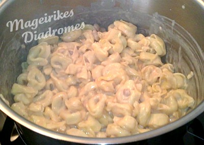 - Βράζουμε τα τορτελίνια, τα σουρώνουμε και τα ξαναβάζουμε στην κατσαρόλα.